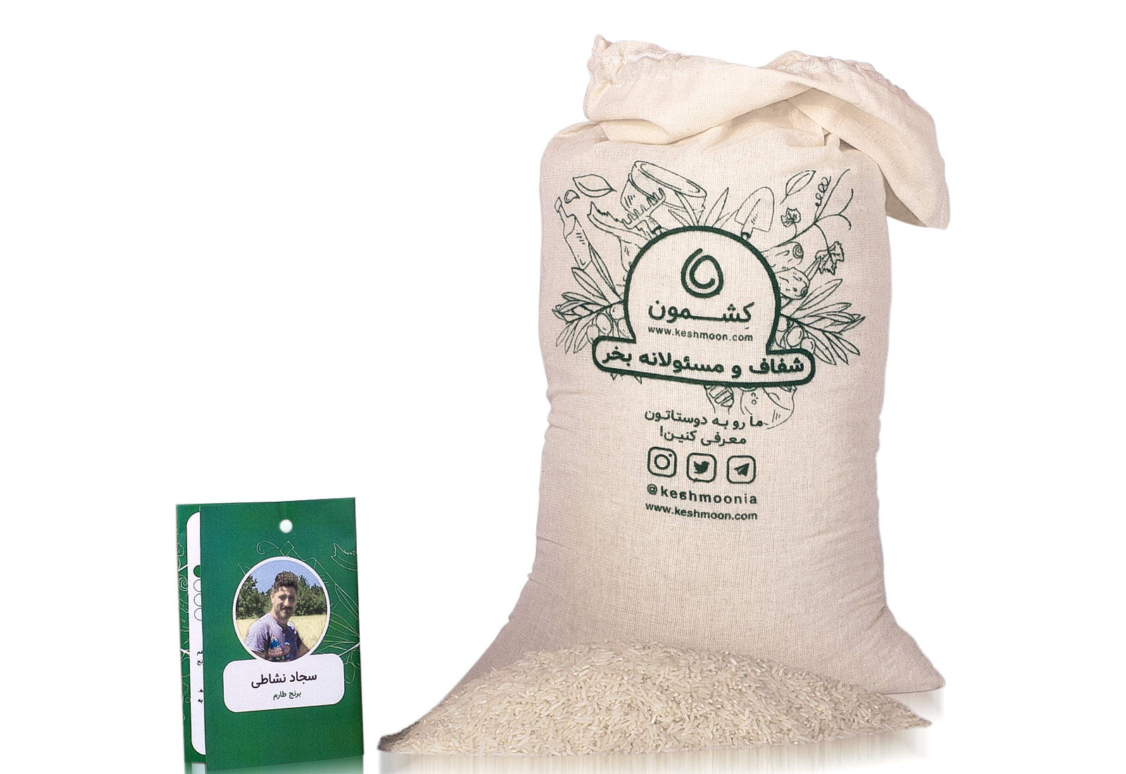 با خرید برنج طارم شناسنامه دار از کشاورز، علاوه بر استفاده از محصول با کیفیت، برنجی رو میخرید که فقط از یک شالیزاره و کار یک کشاورز مشخصه. تیم کنترل کیفیت کشمون با نظارت به کار کشاورزها و بعد از بررسی ویژگی های محصول، قیمت گذاری رو براساس کیفیت محصول انجام میدن و برنج رو با درجه کیفی مشخص، با اسم خود کشاورز در سایت قرار میدن.