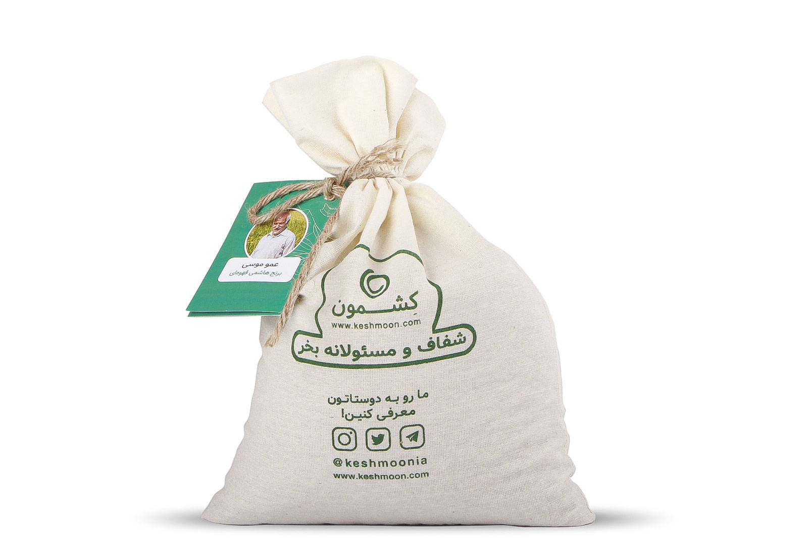 با خرید برنج از کشمون، شما برنجی رو مصرف می کنید که با انواع دیگه برنج قاطی نشده، از نظر ویژگی های ظاهری بررسی شده تا یک دست باشه و با نظارت میدانی تضمین شده که از یک شالیزار برداشت شده. شالیزارهایی که در اونها سم و کود شیمیایی استفاده نمیشن.