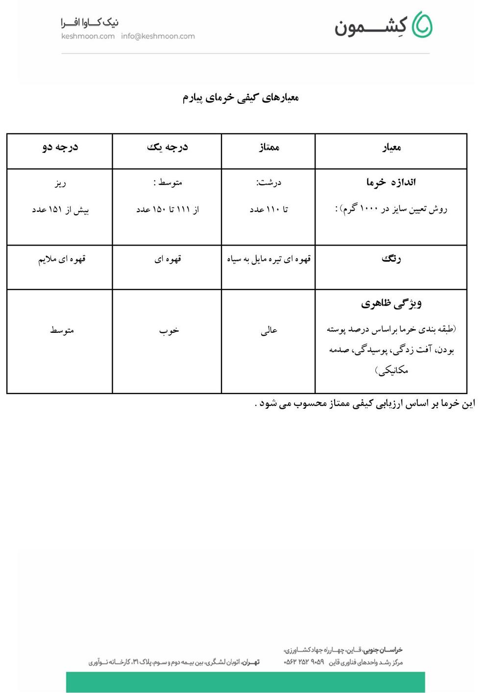 نتیجه آزمایش خرما پیارم بسته بندی اقتصادی